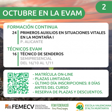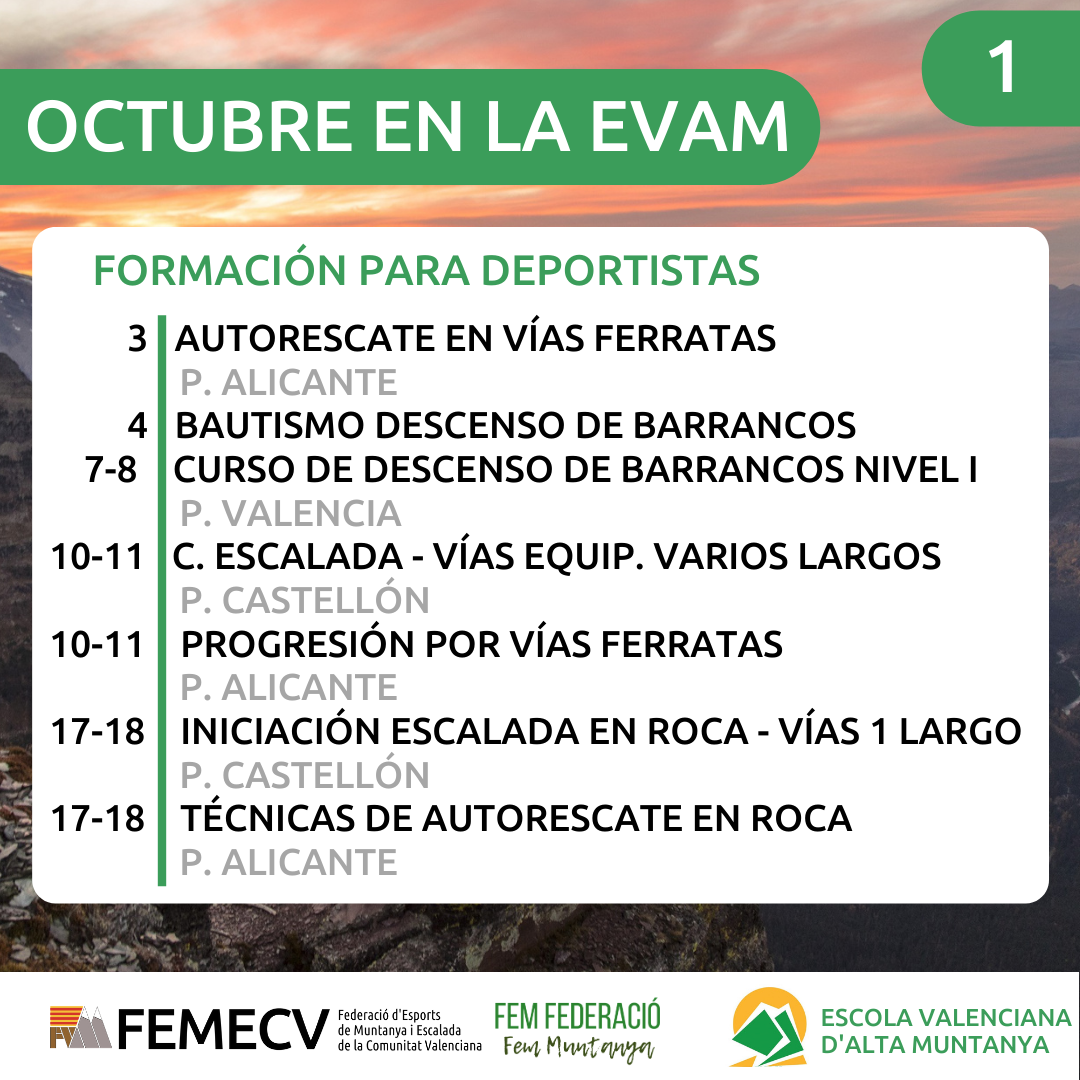 Durante el próximo mes de octubre vuelven los cursos que ofrece la EVAM en las distintas modalidades formativas: cursos para deportistas y cursos de formación continua, así como el curso de Árbitro Autonómico de Marcha Nórdica y el curso de Técnico de Senderos.