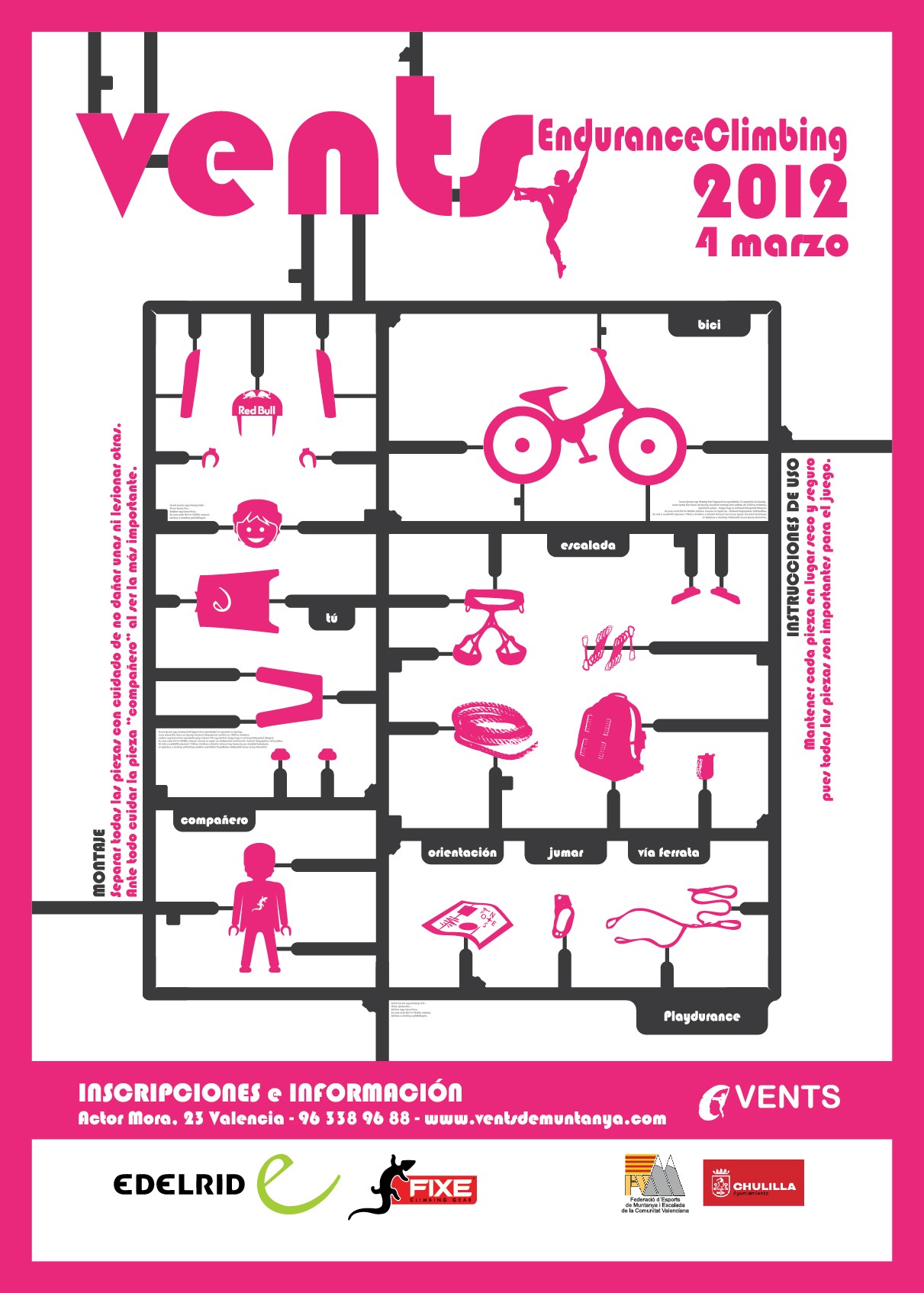 Contamos con la colaboración de la FEMECV y el Ayuntamiento de Chulilla. Como en años anteriores, nuestros patrocinadores son Vaude-Edelrid y Fixe Climbing especialistas en ropa y material de montaña.