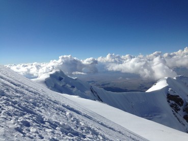 04/08/13 – Subimos al C3 hizimos cima en el pico Raldesnaya 6.580m y bajamos a dormir al C2 ( 3 mienbros de nuestra expedición y yo junto a los guias tuvimos que hacer un rescate y descender a un mienbro de nuestro grupo con desmayos toda la zona de grietas y avalanchas del C2 al C1 ya que se encontraba muy mal )