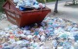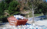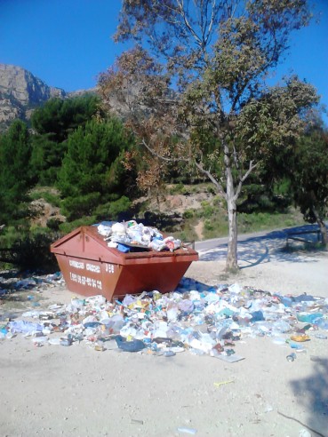 La basura se va acumulando en el contenedor que no ha sido vaciado desde hace más de un mes por los encargados del paraje (Consellería de medio ambiente) EL viento está esparciendo los residuos por todo el paraje.