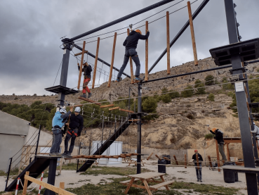 La sesión del viernes se realizó en Onil, en el parque de aventura Trail Natura. Una clase teórica y práctica de operador y supervisión de EPIs en parques de altura y una clase con presentación de los contenidos del dosier de apuntes y prácticas de repaso y aplicación en las instalaciones.