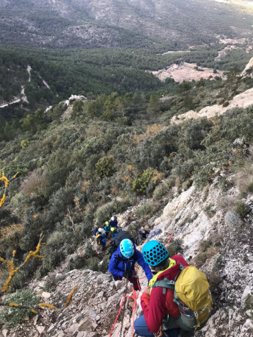 El sábado, se llevó a cabo una salida de clases de prácticas de campo en el Maigmó. Con ejercicios de búsqueda de balizas, conducción y gestión del grupo, maniobras básicas con cuerda de seguridad, interpretación del entorno y del patrimonio. Se procedió a realizar una ruta literaria según extractos de diversas rondallas de Enric Valor, hasta llegar a la casa de Planisses. Se visitaron varias cavas de nieve, se realizó una búsqueda y localización de balizas, se gestionó la seguridad en el recorrido y se ascendió al Maigmó por la ruta de las cadenas.
