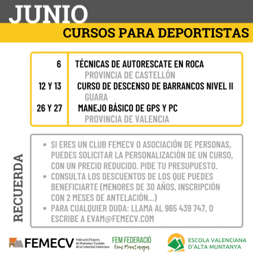 Es interesante conocer que la oferta formativa se puede adaptar al nivel de un grupo, club o asociación, siempre con un mínimo de participantes. Si se trata socios de un Club FEMECV se dispone de condiciones especiales.