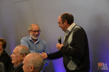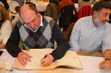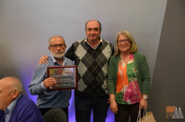 El Presidente de la FEMECV, Carlos Ferrís y la delegada provincial de Alicante, Trini Mendoza, entregaron al final de la comida una placa de la FEMECV en agradecimiento a toda una vida trabajando por el montañismo.