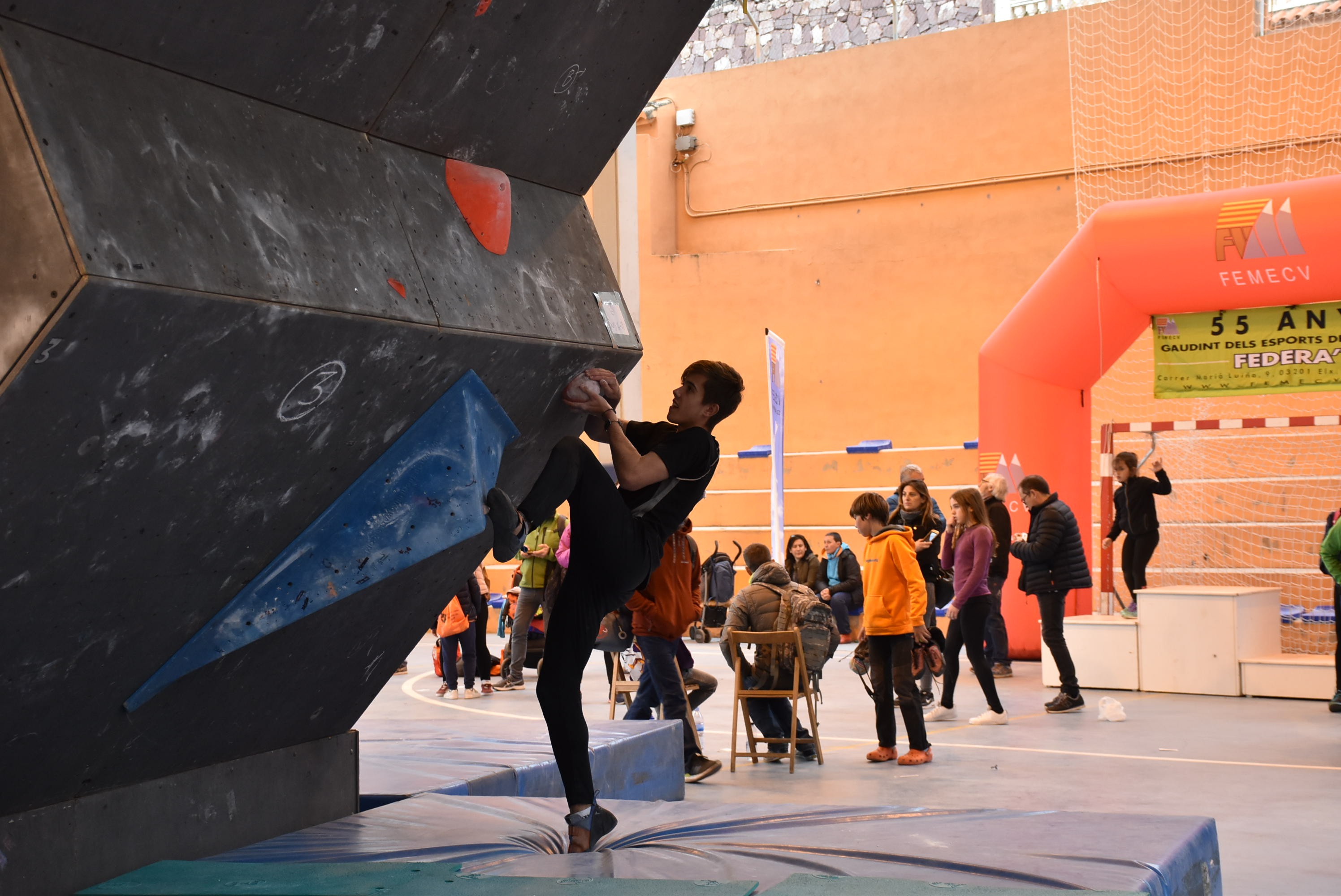 El pasado 7 de abril, se realizó en Serra (Valencia) con un día fresco y algo nublado, la I prueba de Copa de Escalada en Bloque FEMECV.