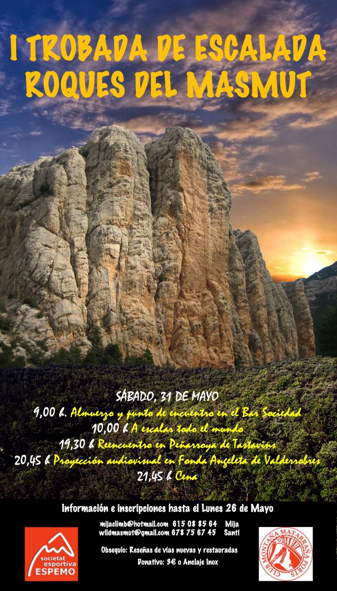 La Societat Esportiva Espemo i el Club Montaña Matarraña vos conviden a participar en aquesta trobada escaladora.