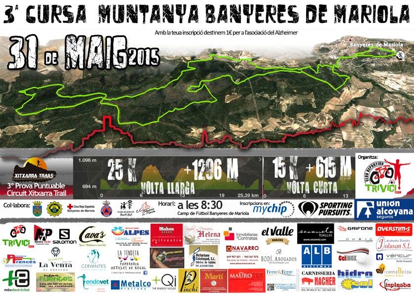 El próximo domingo 31 de Mayo, el Club Tivici Team organizará en Banyeres de Mariola (Alicante) la III Carrera per Muntanya Banyeres de Mariola (Xitxarra Trails 2015), la salida se dará a las 9:00h y se podrán hacer dos circuitos, la Carrera Larga 27km (1340m / +) o la Carrera Corta 15km (650m/+).