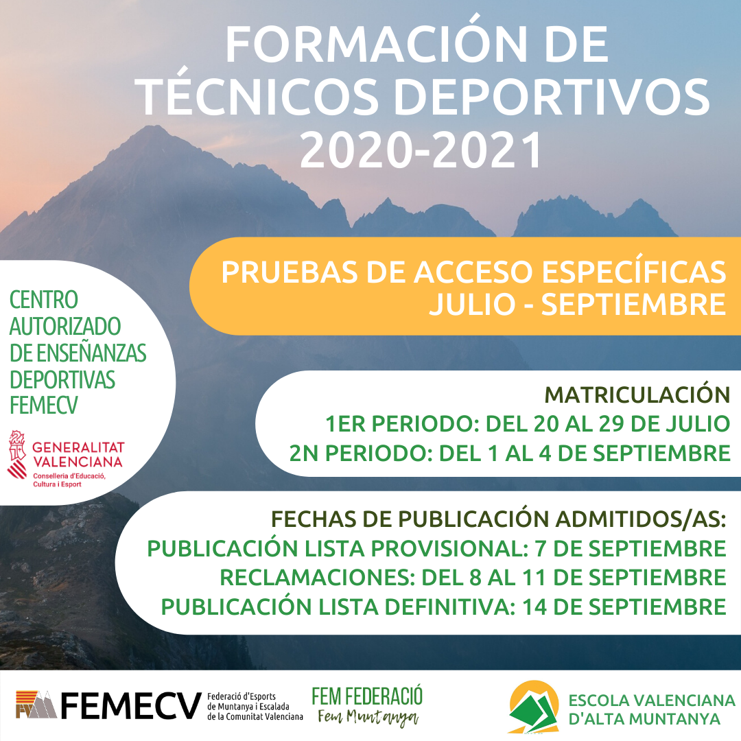 Si estás interesado/a en cursar alguna de estas enseñanzas de Técnico Deportivo, será necesario realizar estas pruebas, para la posterior matriculación a la formación en las especialidades de: Media Montaña, Barrancos, Escalada.