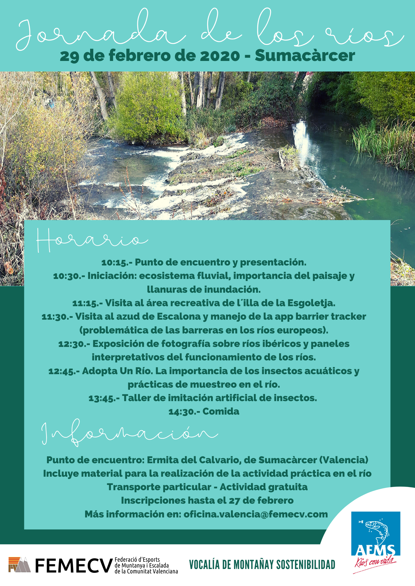 Desde la vocalía de Montaña y Sostenibilidad se ha programado esta actividad que pretende poner en valor la incalculable importancia de nuestros ríos. Una jornada con aforo reducido, en la que se realizarán visitas a distintos lugares, explicaciones y sesiones prácticas, dirigida a los federados y federadas a partir de 12 años