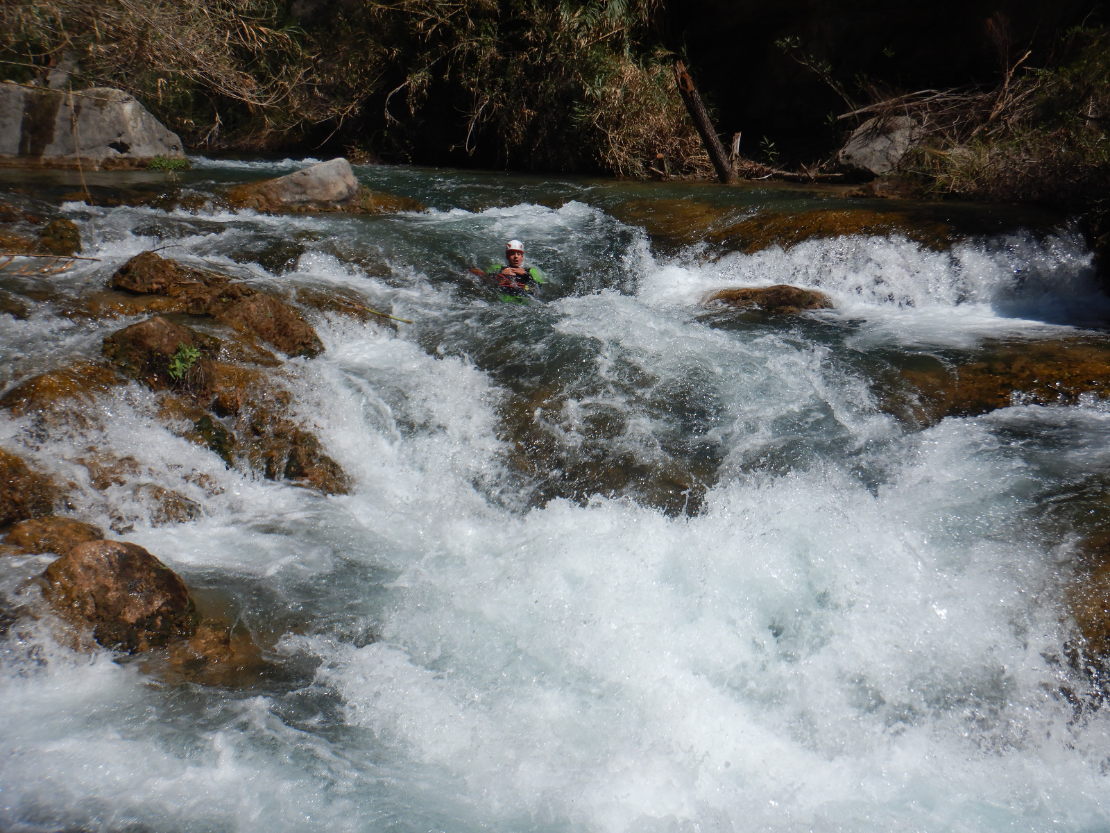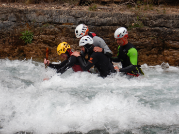 El domingo 23 de abril, se descendió el río Mijares, desde “el chorro” de desagüe del embalse, pasando por el estrecho de Chillapájaros y saliendo en la presa de Montanejos, durante su descenso se descendió por diferentes rápidos con características varias, además los alumnos practicaros en traslado de una persona lesionada por dentro de un río utilizando la saca de rescate, y su propio cuerpo con la técnica conocida como “carnada”.