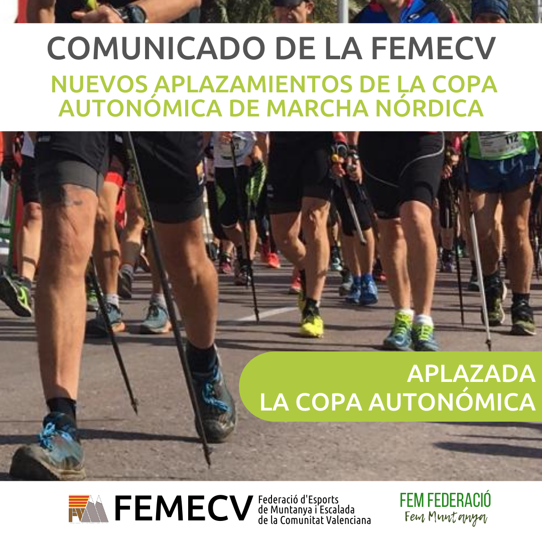 Ya se habían aplazado las 1ª y 2ª pruebas de la copa, pero el Comité de Marcha Nórdica ha decidido hacerlo también con la 3ª y última prueba, por lo que queda aplazada la Copa Autonómica en su totalidad. Para ello, emiten un comunicado oficial.