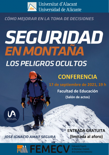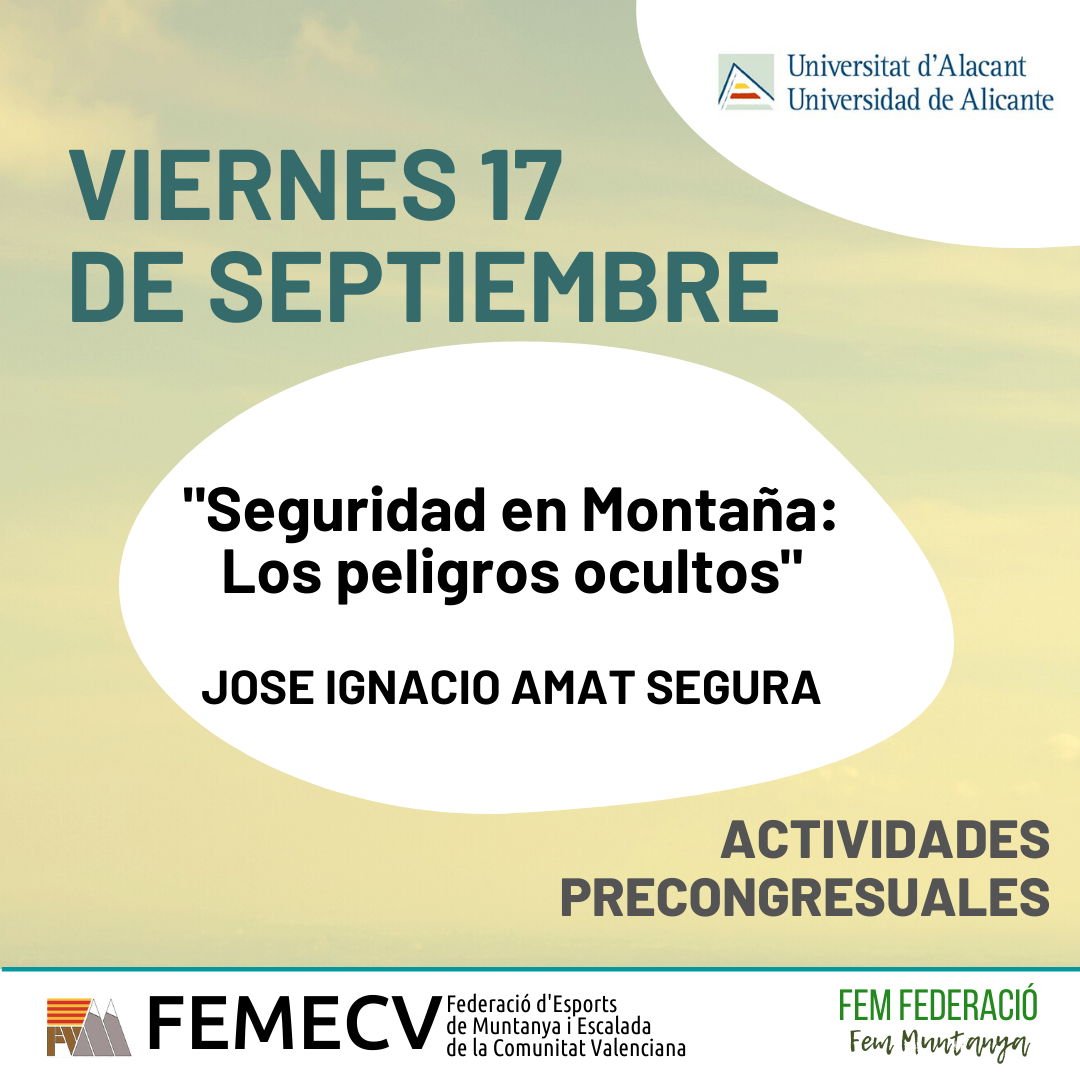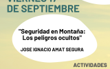 Será el próximo viernes día 17 de septiembre, a las 19h, y consistirá en una charla de José Ignacio Amat Segura, bajo el título: Seguridad en Montaña. Peligros ocultos.