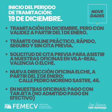 Será el próximo lunes cuando se inaugure el periodo con mayor número de tramitación de licencias entre los Clubs FEMECV y la mayoría de los y las deportistas.