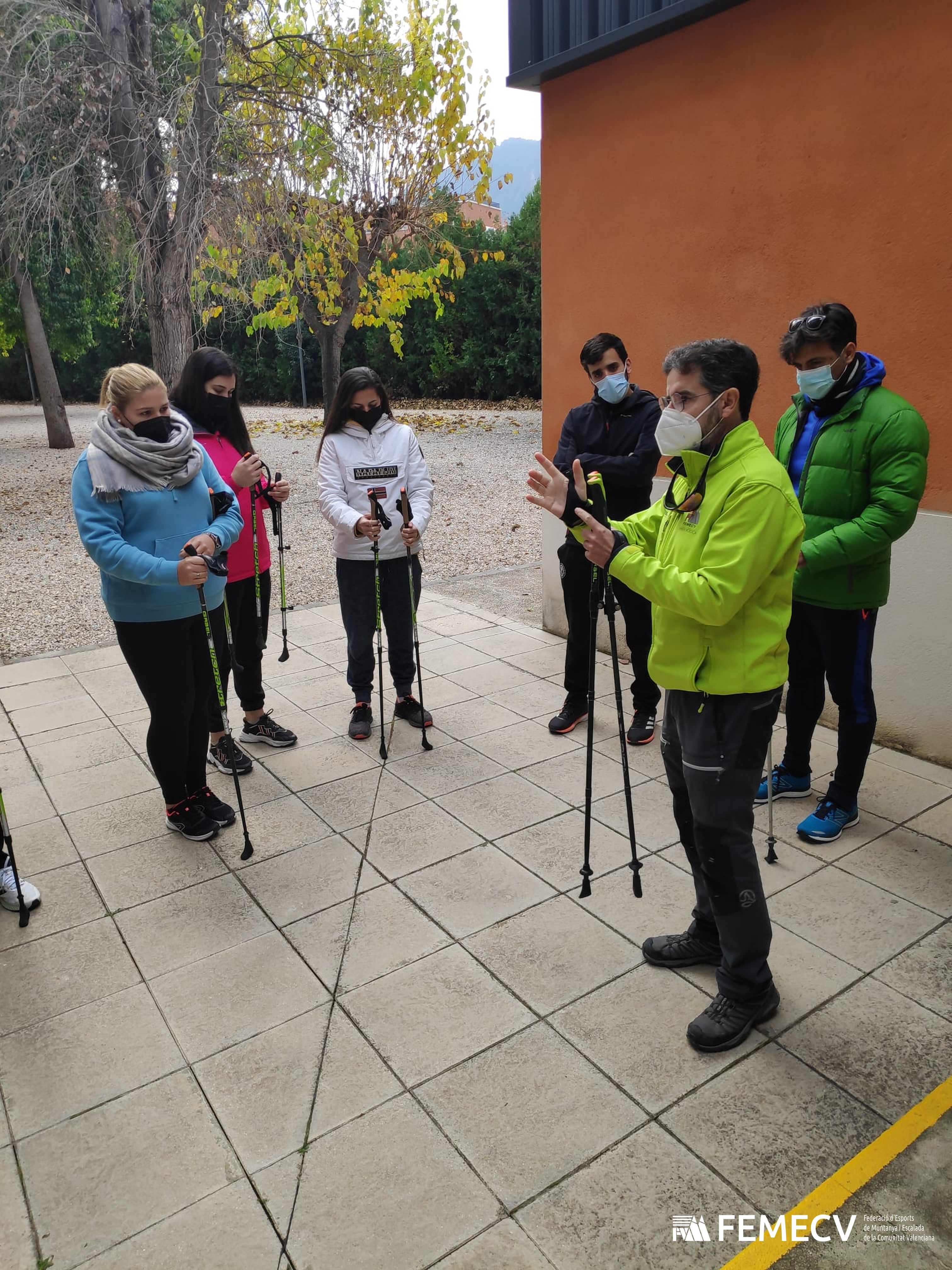 Organizada por Laura Jiménez, profesora de esta asignatura en el grado de Ciencias de la Actividad Física y del Deporte y Vocal de Montaña Inclusiva y Solidaridad de la FEMECV; y Ramón Redondo, responsable del área de deporte adaptado del Comité de Marcha Nórdica de la FEMECV, se realizó esta acción dirigida al alumnado de 3º del grado de CCAFD.