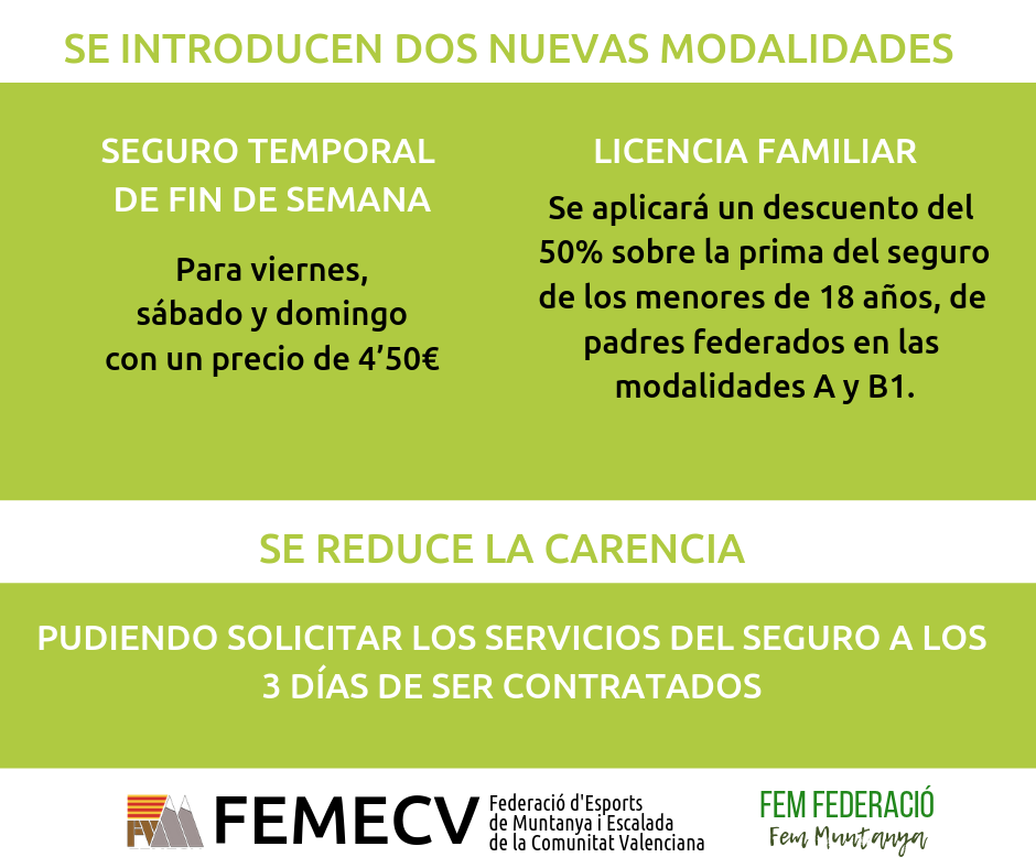 El límite de la tramitación de este seguro será hasta el jueves previo a la actividad, para poder realizar la gestión correspondiente con la aseguradora.