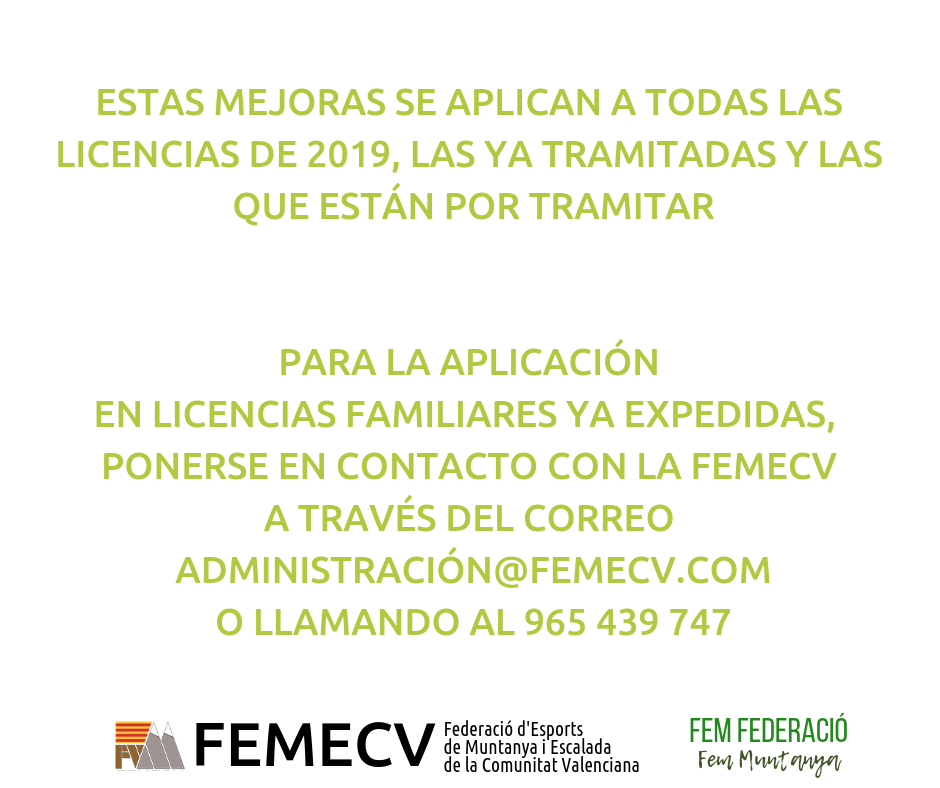 Estas mejoras se aplican a todas las licencias de 2019, las ya tramitadas y las que están por tramitar.