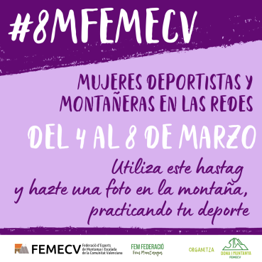 Pese a este cambio de planes, sigue en marcha la campaña para mostrar una montaña repleta de mujeres deportistas. Para participar, basta con hacerse una foto en una de nuestras salidas de este fin de semana y de los próximos días y utilizar el hastag #8MFEMECV.