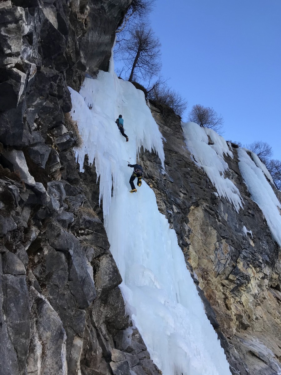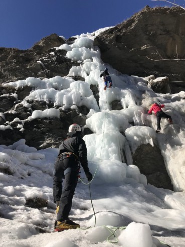 Las jornadas se repartieron entre jornadas de formación donde se vieron técnicas de progresión y aseguramiento en hielo y escaladas de cascadas de hielo por los numerosos sectores que hay en la zona.