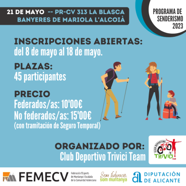 En esta ocasión, además de la Diputación de Alicante que subvenciona este programa por octavo año consecutivo, y la Vocalía de Senderos y Refugios de la FEMECV, que se encarga de la coordinación, el Club anfitrión que colabora es el Club Deportivo Trivici Team, de Banyeres de Mariola.