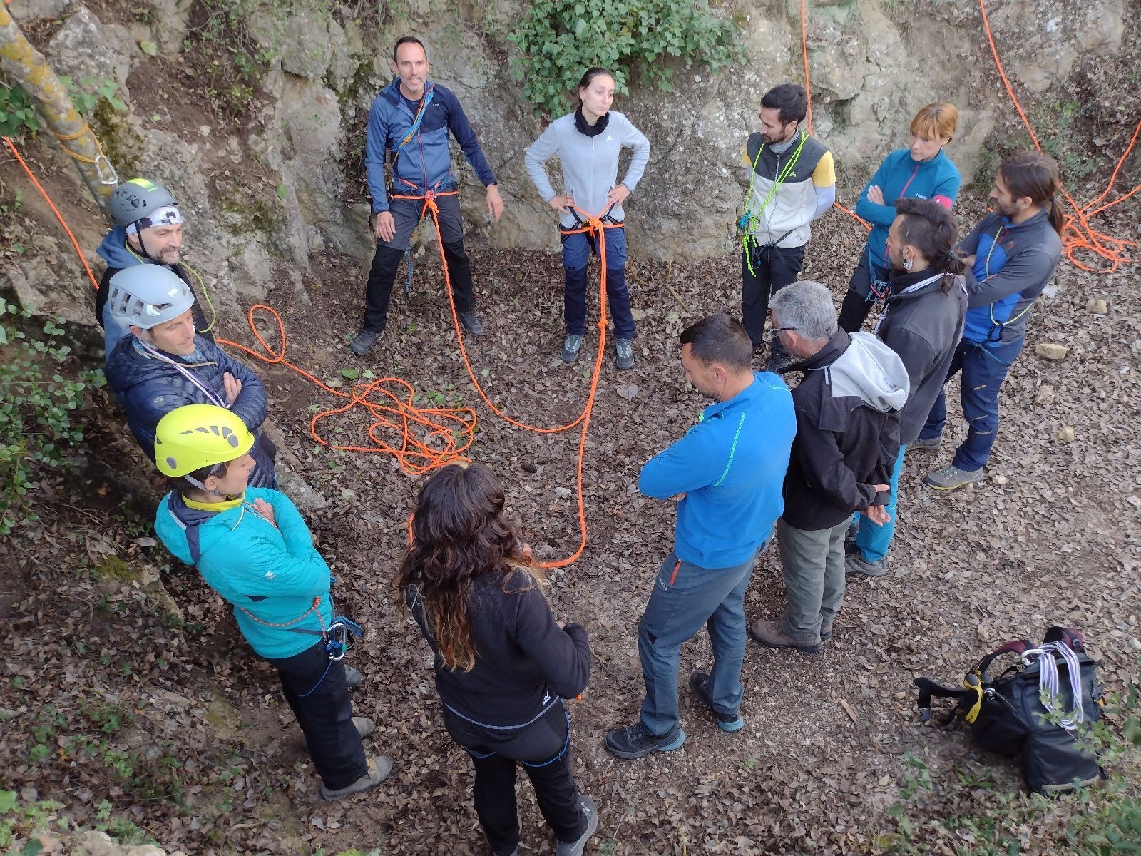 Bocairent fue el lugar elegido para la actividad del domingo. Una práctica de campo de talleres de cabuyería, realización de maniobras prácticas de aplicación de los conceptos aprendidos, ejercicios por equipos e individuales para gestionar puntos críticos de riesgo. Para finalizar, un supuesto práctico de aplicación de planes alternativos a la programación original, realizando una visita guiada por el entorno y el pueblo de Bocairent, visitando las Covetes y otros lugares de interés.