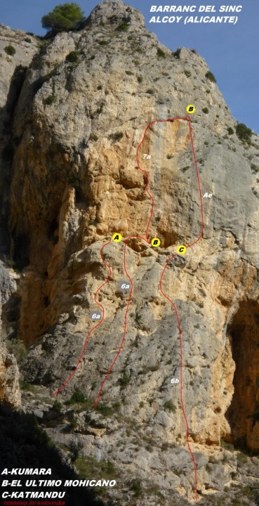 Nuevas rutas de escalada de Antonio Payá (Llargui) en el Barranc del Cinc, Alcoi. Vias totalmente equipadas con parabols del 10 y del 12 y con reuniodes preparadas para rapelar.