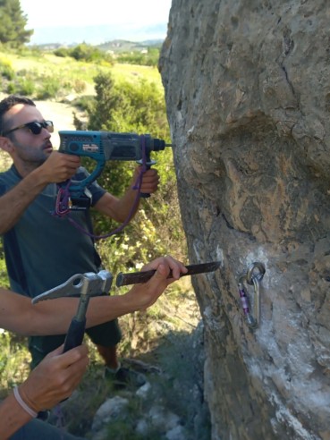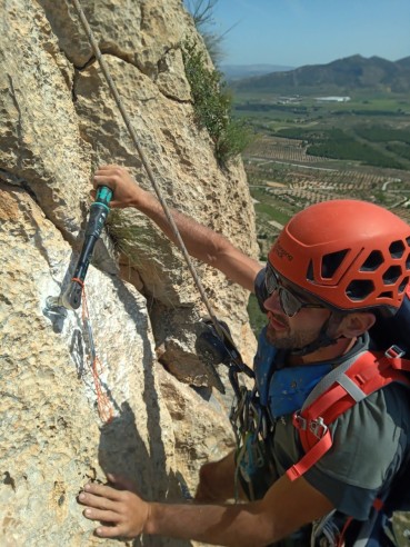 El sábado se eligió para esta formación las Peñas del Rey, comúnmente conocido como Cabreras, ubicado en la localidad de Sax. Se inició la sesión aclarando los conceptos básicos sobre colocación de los diferentes tipos de anclajes.