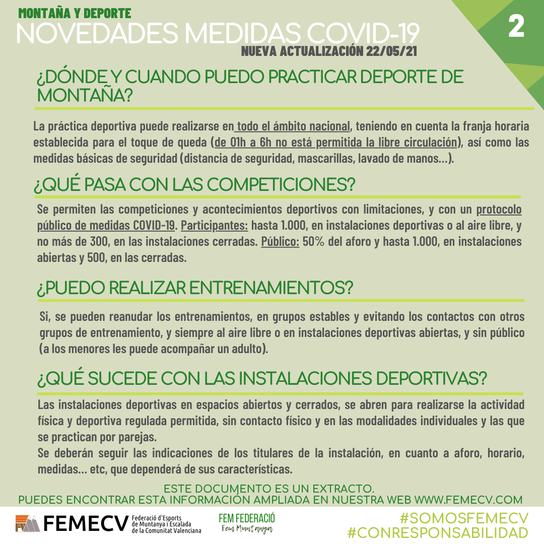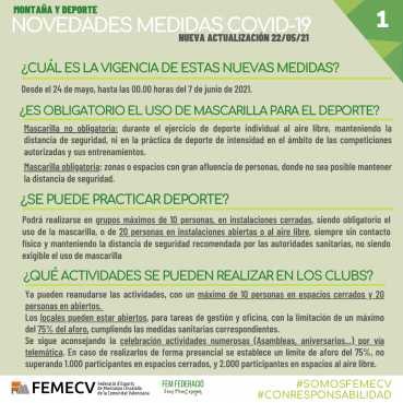 Una vez más, sigamos siendo responsables, como deportistas, Clubs y FEMECV, para pronto poder disfrutar de nuestro deporte y de la montaña con seguridad y tranquilidad.