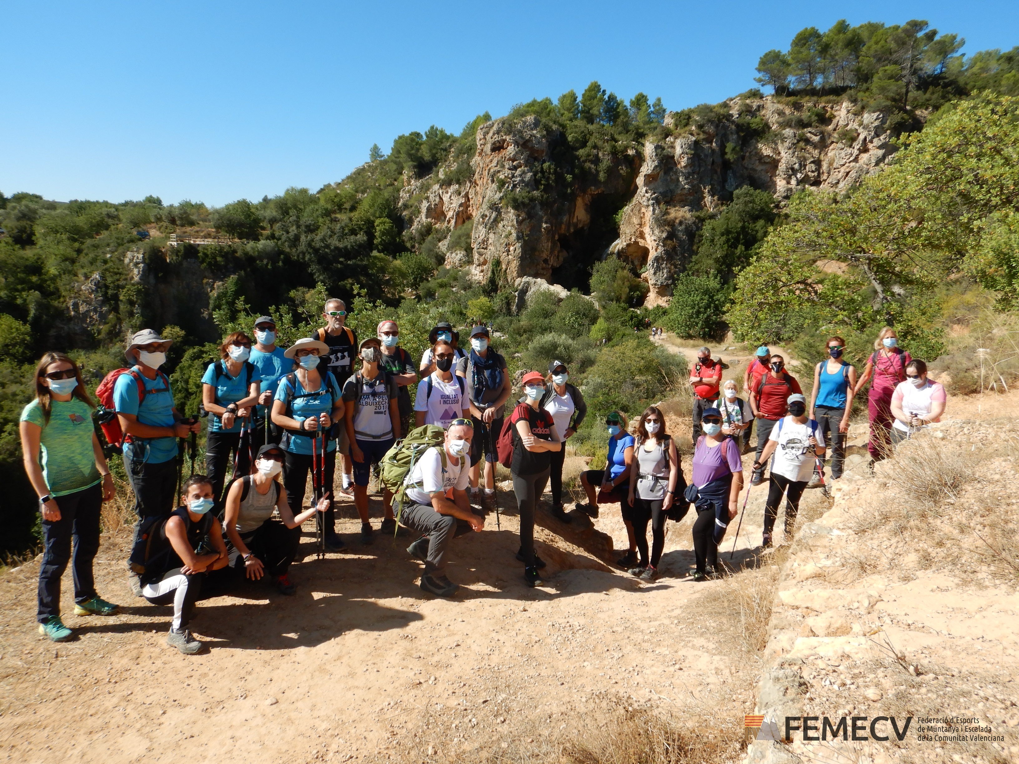 Agradecer la colaboración del club G.E.M.A de Yátova que nos cuidó durante la ruta, realizando el guiado y facilitando el paso en zonas más técnicas con la instalación de cuerdas y cadenas fijas, así como preparando el colofón final con un picoteo antes de despedirnos.