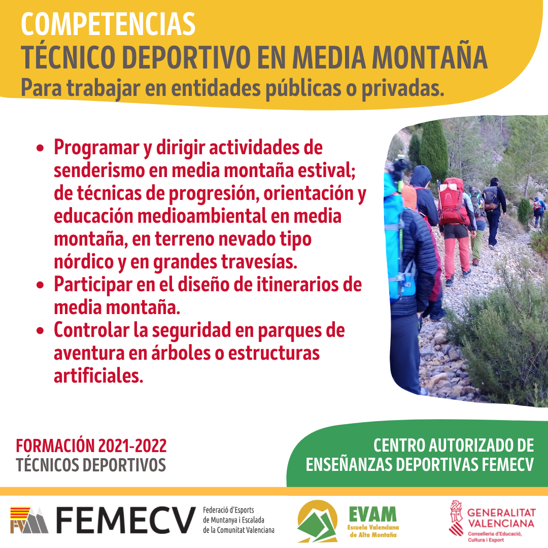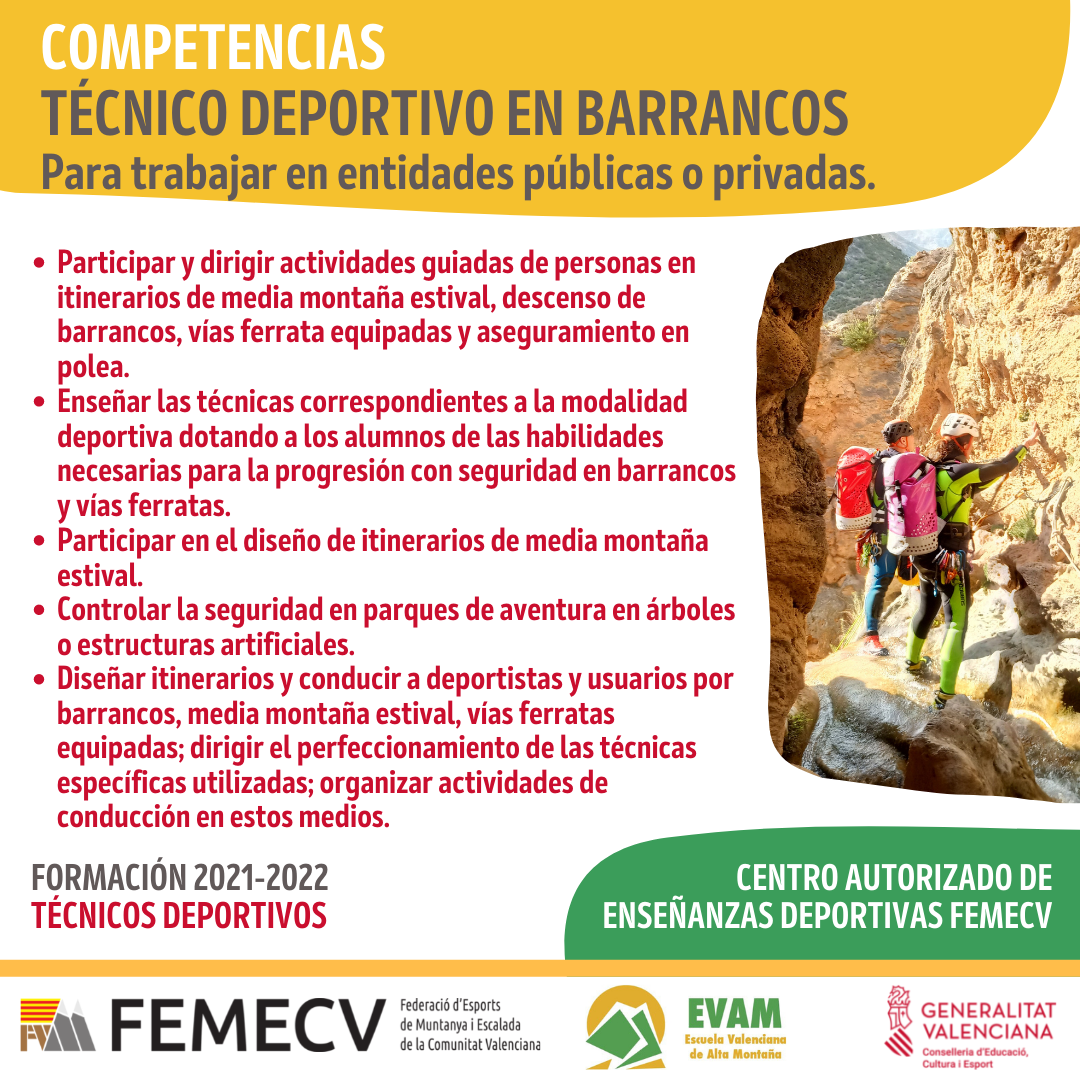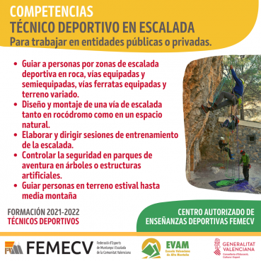 La formación que se imparten en el CENTRO AUTORIZADO DE ENSEÑANZAS DEPORTIVAS FEMECV, son ciclos de formación oficial y reglada de régimen especial, en concreto de las siguientes especialidades: