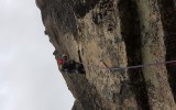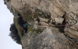 10:00 am, salimos a salto de mata hacia el "Pico de la Miel", la organización ha decidido retrasar dos horas porque la pared continúa mojada, como es habitual, no tenemos mucha suerte en el sorteo de las vías y decidimos empezar por "Murcielagos" que resultaba estar muy empapada y nos hace replantearnos si no sería mejor hacernos un chocolate en el bar... hemos tardado más de dos horas al hacerla y creo que los dos estamos de acuerdo en que si la siguiente está en iguales condiciones, bajaremos hacia abajo.