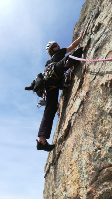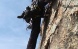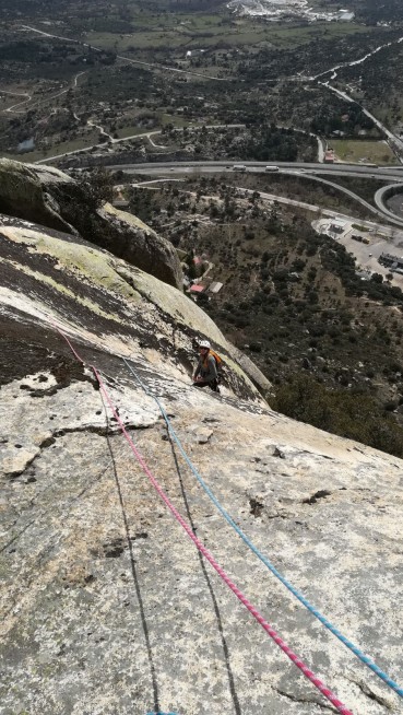 Probamos con una vía rápida, puesto que nos quedan poco más de dos horas y ya notamos la fatiga. "Piloto" nos deja una hora restante para seguir anotando puntos. Decidimos hacer "Espolon Manolín" pero una vez a pie de vía, como ya suponíamos, hay overbooking. Así que decidimos hacer "Superpiloto", una vía que no conocíamos y nos deja en la cumbre a 5 minutos de acabar la prueba.