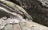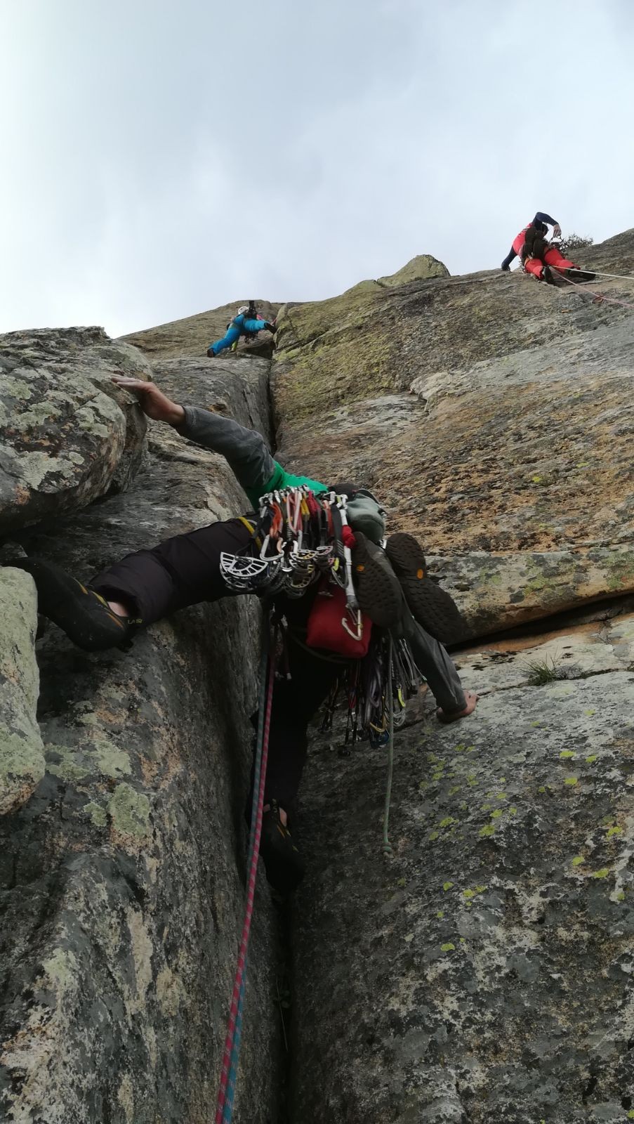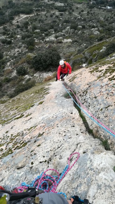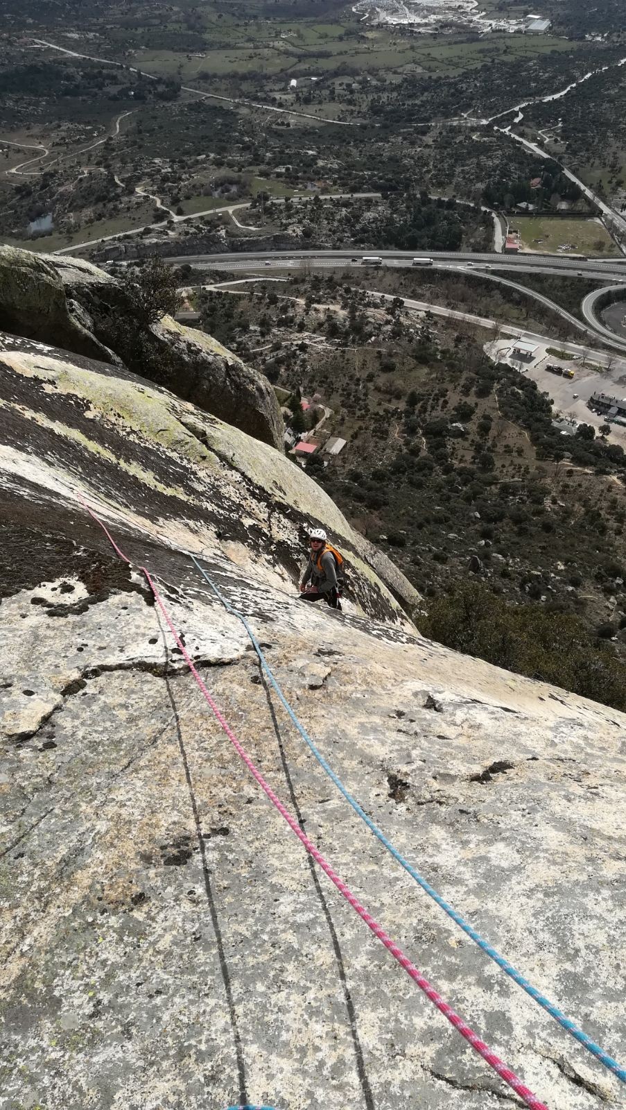 Poco a poco se deja ver el sol de forma muy tímida, y la pared se va secando. "Lola Flores", "Esteban Altieri", "Jose Manuel Alaiz", "La Cara Oculta de la Luna" sueño vías que van cayendo, y ya descartadas las dos primeras opciones de la clasificación general (Rafa/Javi y Carlos/Jorge su dos cordadas muy difíciles de superar) decidimos intentar superar a la cordada de Gabo y Talo, dos compañeros que también están en el programa de tecnificación pero de Madrid.