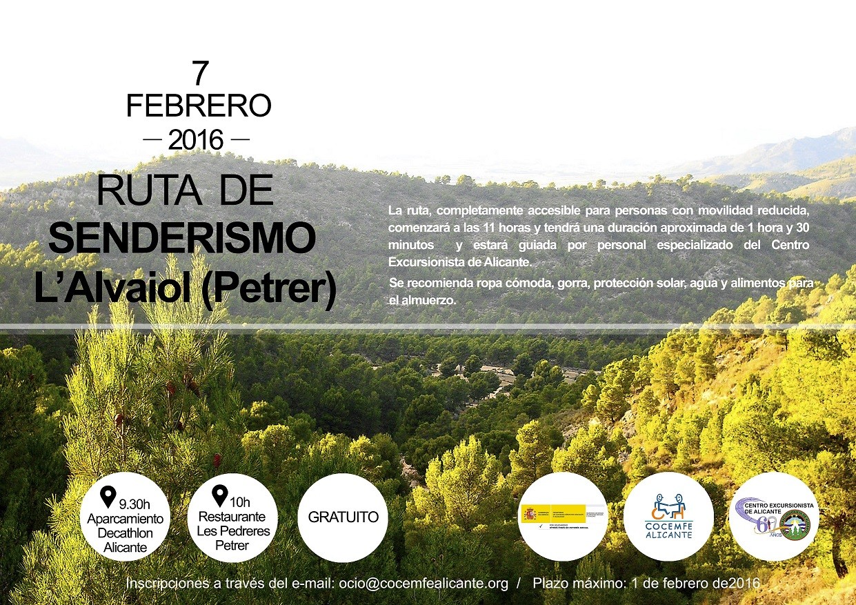 El próximo dia 7 de Febrero el Centro Excursionsita de Alicante realizaran un recorrido totalmente accesible para personas con movilidad reducida por el Paratge de l'Alviol, a Petrer.