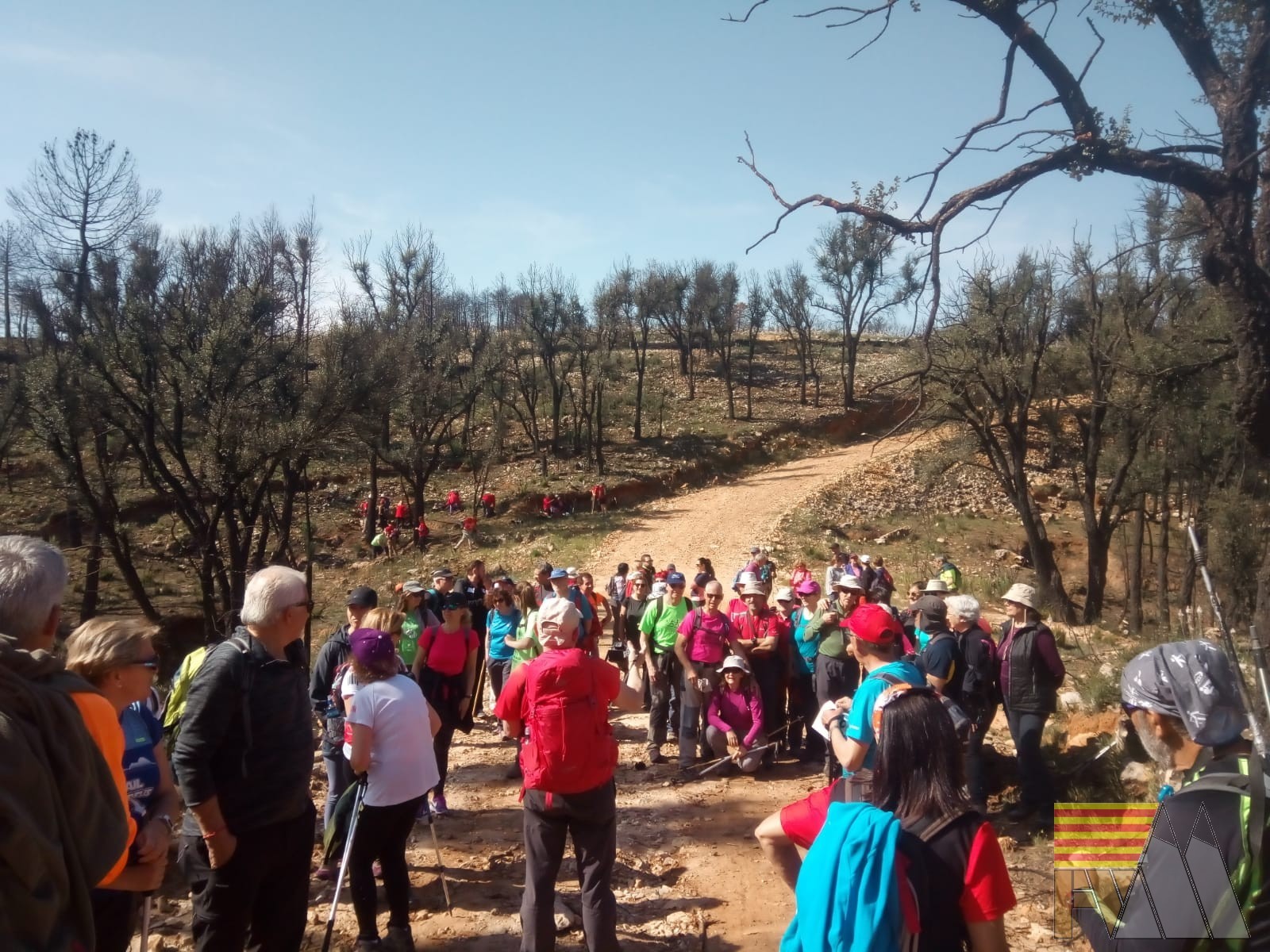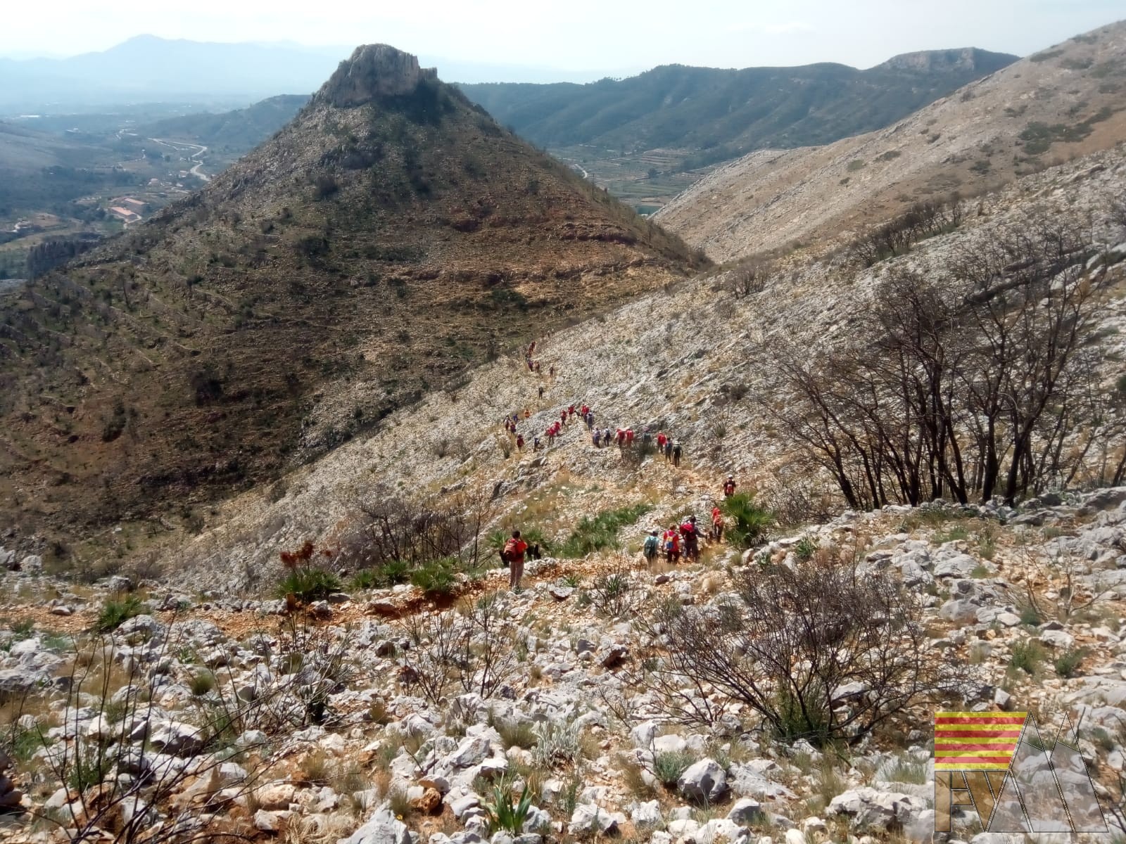 Un grupo de 100 montañeros de diferentes clubes del Valle Albaida, el Comtat, La Safor la Ribera y de Valencia andamos con el alcalde de Pinet y técnicos ambientales por la sierra quemada y ahora regenerándose gracias al esfuerzo de los ayuntamientos, Generalitat y voluntarios.