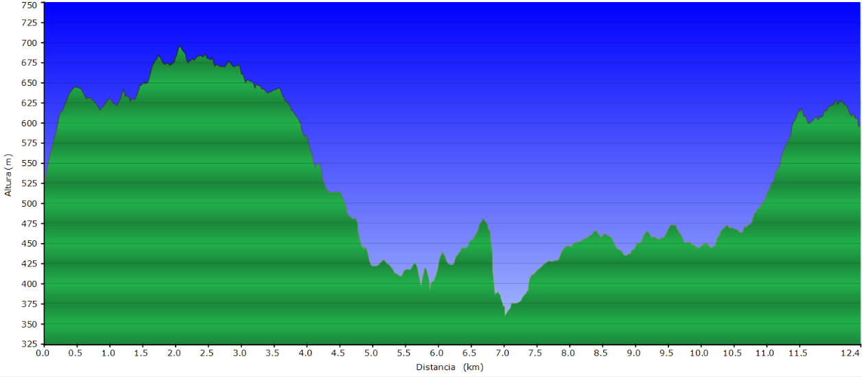 Salida de Yatova dirección Mijares y Pocico valentin, donde dejaremos el coche, subida fuerte al cerro para bajar al rio magro, bajada inclinada (como podéis ver en el grafico), senda del rio con una parte muy desigual por las piedras, otra mas cómoda, pasos del rio complicados si no te quieres meter al rio, llegamos a tabarla y subida a casas de tabarla por el GR 7 (subida muy inclinada) y pocico valentin, llevar agua porque en el pozo no sale.