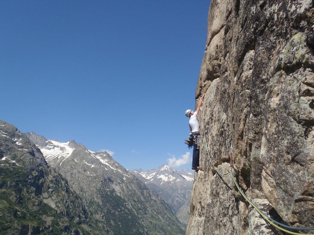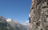 Al día siguiente de la Dibona escalamos en Tete de la Maye, una pared justo a la espalda del camping, no muy continua por las campas que la cortan pero con un granito excepcional y cuatrocientos metros de recorrido que no está mal. Esto nos sirvió de despedida ya que las tormentas de por la tarde nos mandaron directamente a España de vuelta y como el tiempo en el pirineo estaba muy parecido decidimos dar por terminada la concentración un par de días antes.