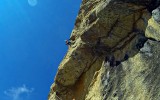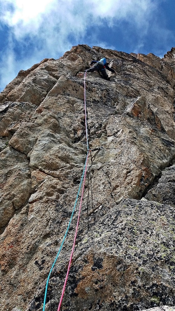 El día siguiente, desde el mismo camping de La Berarde fuimos a escalar a la pared que da sombra al camping, cuatrocientos metros de granito, no muy continuo pero con largos bonitos.