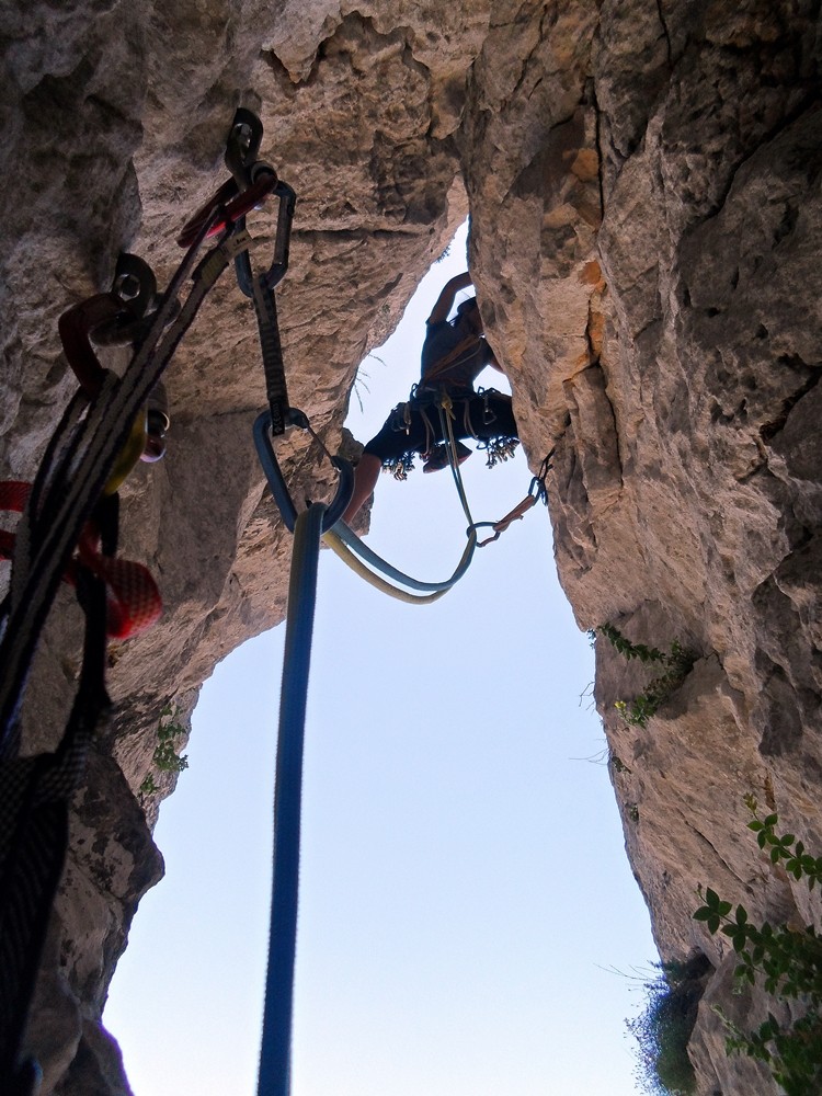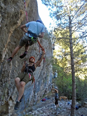 El sábado quedamos en Guadalest por la mañana y dedicamos toda la jornada a repasar las maniobras de autorrescate que se vieron en el primer nivel y a introducir las que quedaron pendientes para este segundo nivel, rescate en un rapel, rescate a un primero y rapel con accidentado. Se explican y se practican todas.