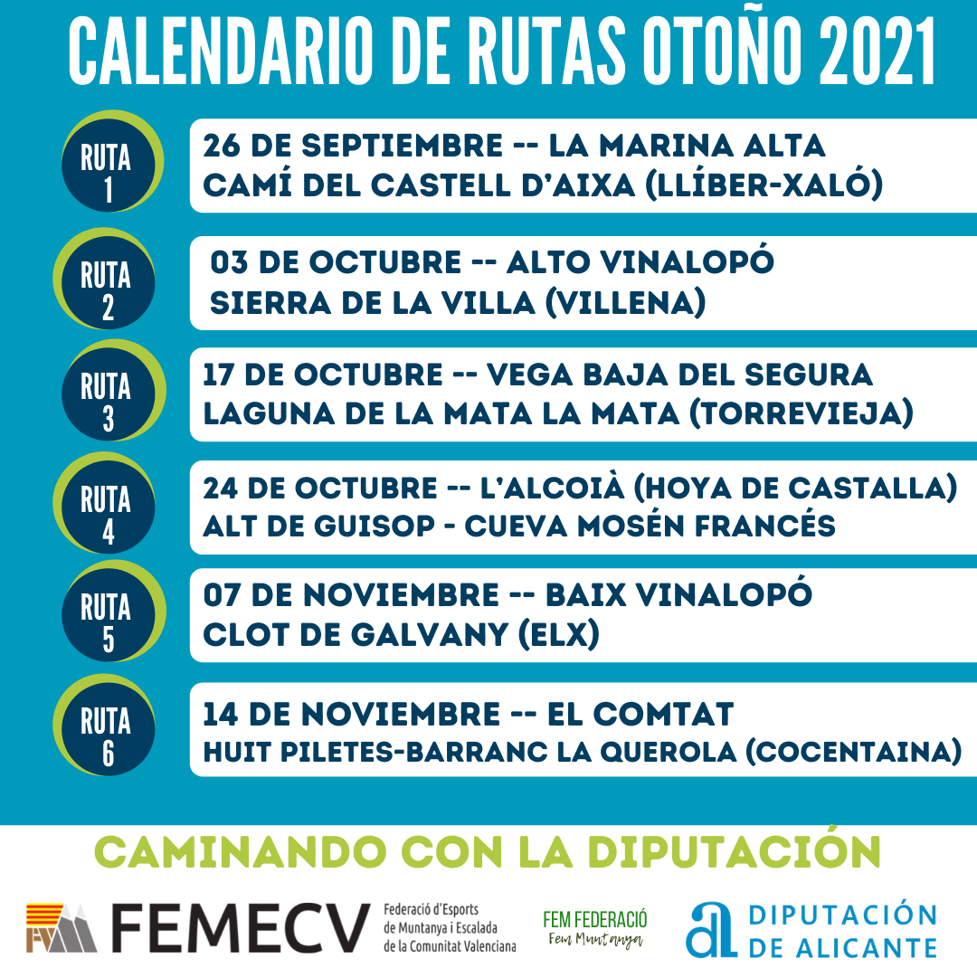 Dirigidas al público general (son rutas de dificultad baja y media), que han sido planificadas y organizadas por el Coordinador FEMECV del programa Francisco Hernández y Clubs de la provincia de Alicante. Con ellas se pretende difundir la historia patrimonial y etnográfica de la provincia, así como contribuir a la conservación del medio ambiente.