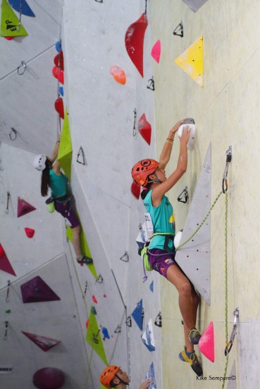 Después de tanto sacrificio por parte de los juveniles y esfuerzo por parte de la federación para poder llevar a los chavales a las competiciones parece que empiezan a dar sus frutos, de 9 competidores presentados, 6 pasaron a finales solo 3 se quedaron fuera y más por falta de experiencia en estas competiciones que por si estado físico, 2 vías en cada categoría fueron las que se encargaron de los resultados de clasificatoria, una vía de placa y otra en el desplome/techo de la foixarda, una pared que a primera vista parece corta pero cuando te metes debajo los metros crecen y la resistencia hace mella muy rápidamente, finalmente la posiciones para nuestros competidores quedaron: “pones los resultados”