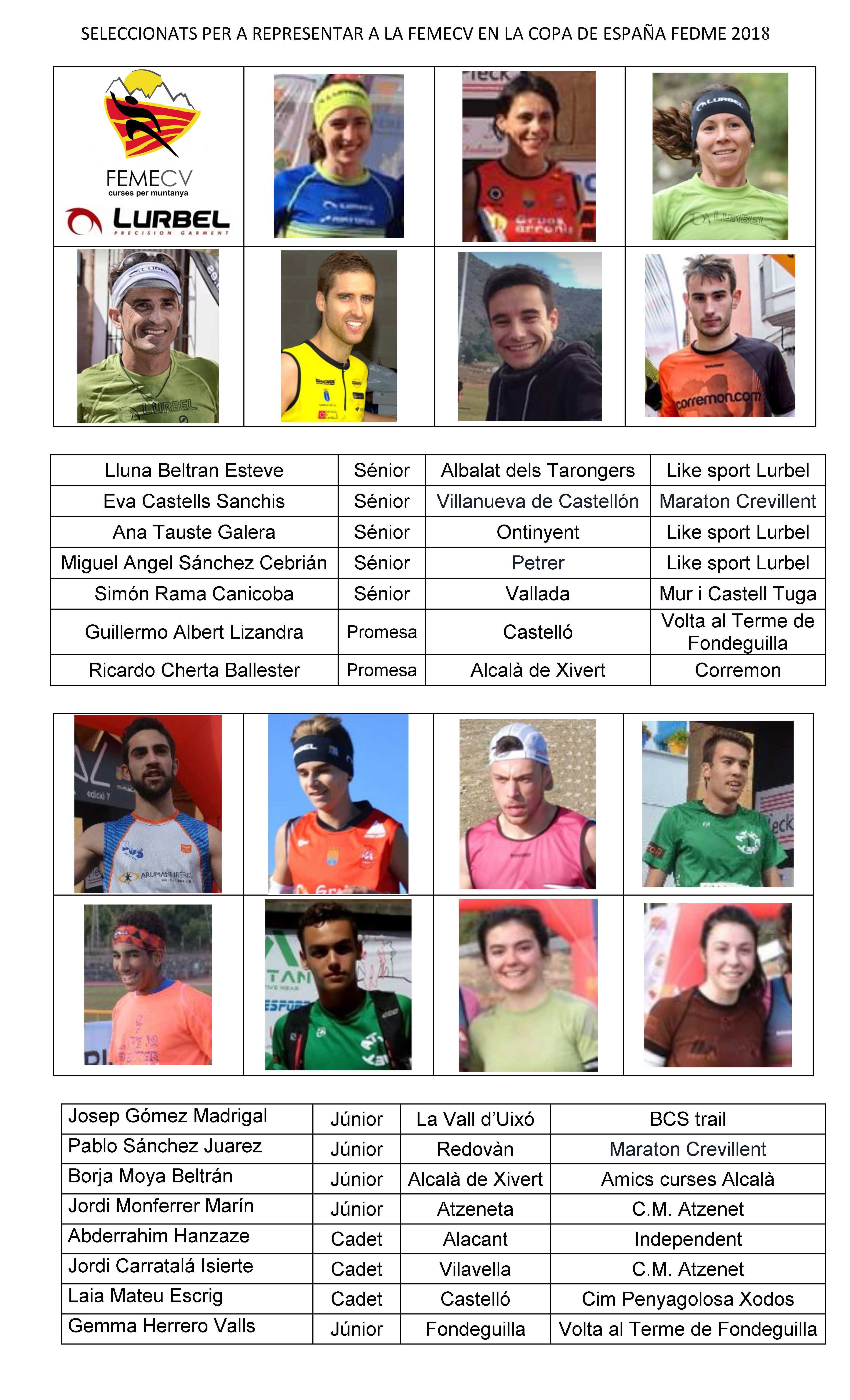 La selección que representará a la FEMECV está compuesta por 15 corredores/as de las tres categorias oficiales: