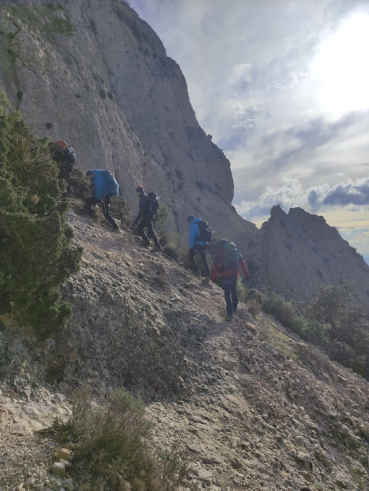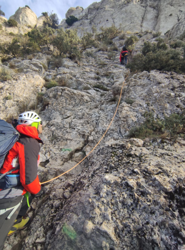 El miércoles se realizó una salida de práctica de campo por la sierra del Maigmó, donde se demostraron diferentes maniobras de aseguramiento con cuerda en zonas de trepadas o resaltes rocosos, así como ayudas directas sin necesidad de cuerda.