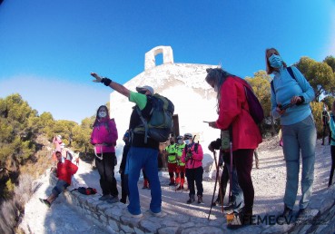 Llegamos a la cabecera del barranco de Catxuli y con la imponente vista del Cid, se visitó primero la ermita de Catí (siglo XVI) para caminar después hacia el Collado de Amorós y en un rápido descenso, se alcanzó el fondo del barranco para iniciar, por cómoda pista, el ascenso hacia la Foradada previo paso por el Calafate.