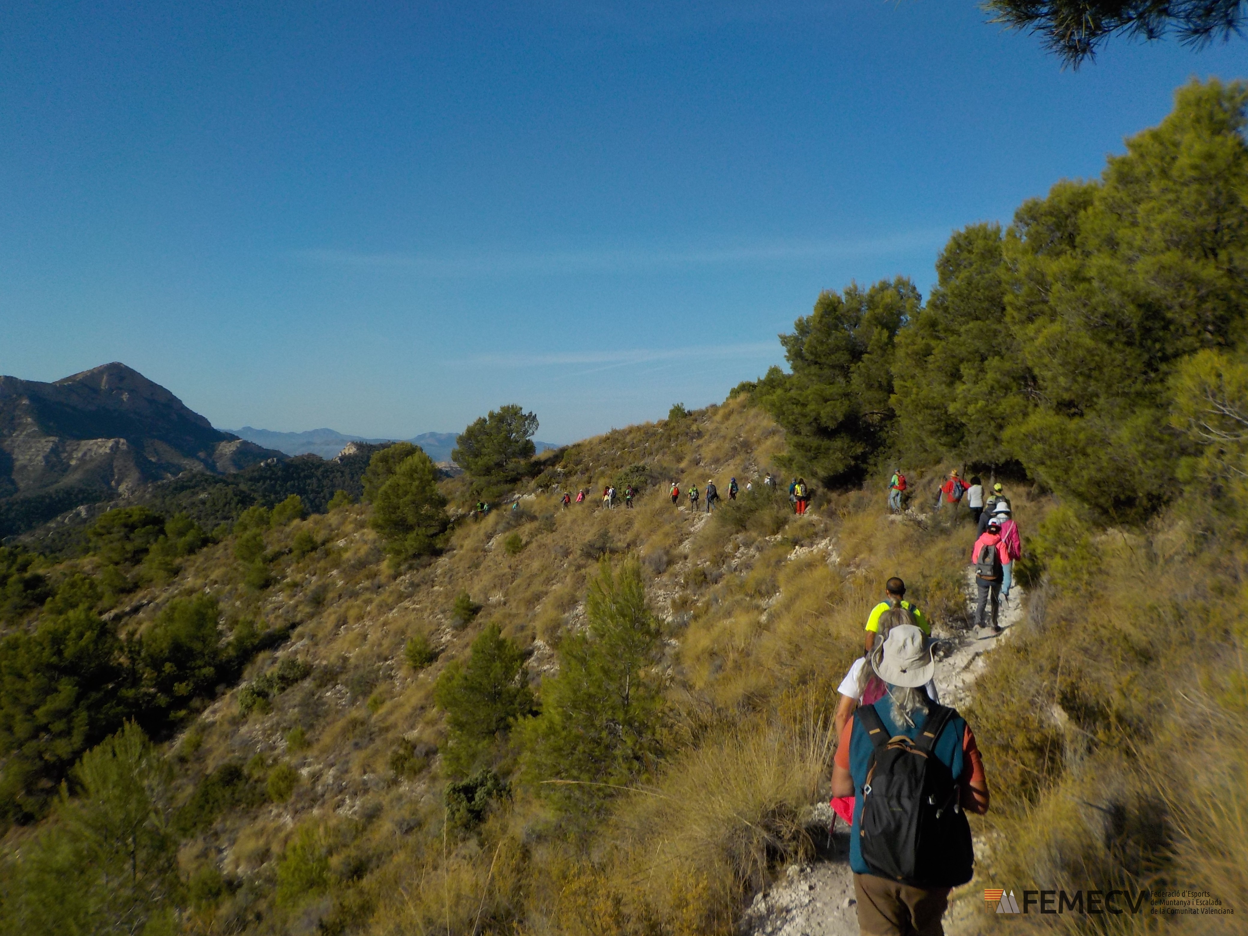 Con el aforo completo se inició en dirección S la caminata en Xorret de Catí, con fresco matutino, pero con día soleado que se mantuvo toda la jornada, muy agradable para realizar la actividad.