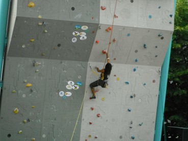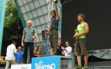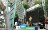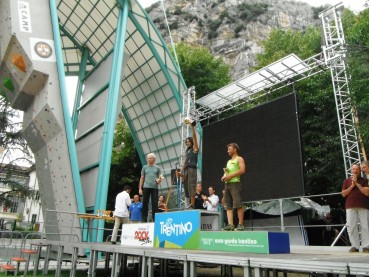 "El dia 27 de agosto llego a Arco, Italia. Me recoge un chofer puesto por la organización, me deja en la puerta del Hotel Pace, me parecía haber pasado de mercenario a ministro. Jajajaja. Era el único español que acudía a esta cita del RockMaster 2012, gracias a la FEMECV. A las de 7:00 de la tarde se celebra el tecnical miting donde acudimos los representantes de Hungaría, Rusia, Alemania, Italia y España. Nos explican el programa y que se aplicaría el nuevo reglamento de la IFSC. Al día siguiente a las 10:00 empezamos la competición de Paraclimbing, dos vias clasificatorias a vista y una de final también a vista. Yo me enfrenté a dos alemanes Thomas y Gunther. La primera via me pilla muy frío y caigo tocando el top, Gunther se pone por delante de mi. En la segunda clasificatoria ninguno llegamos a top y en al final conseguí el primer puesto. Lo mejor de esta competición fue el poder conocer a nuevos compañeros y volver a coincidir con los que ya conocía. Con Simone, del equipo de Italia con problemas de visión, pude hablar sobre la Paraescalada en nuestros respectivos países y la manera de impulsarla. La idea del vídeo le pareció muy buena y me dijo que se apuntaba a escalar alguna gran pared de España y que tenia muchas ganas de conocer mi tierra. Fue más un encuentro de escaladores con problemas físicos, hubo muy buena energía entre todos y compañerismo. Me sentí apadrinado por los alemanes y por los italianos, garcías a todos por esos buenos momentos."