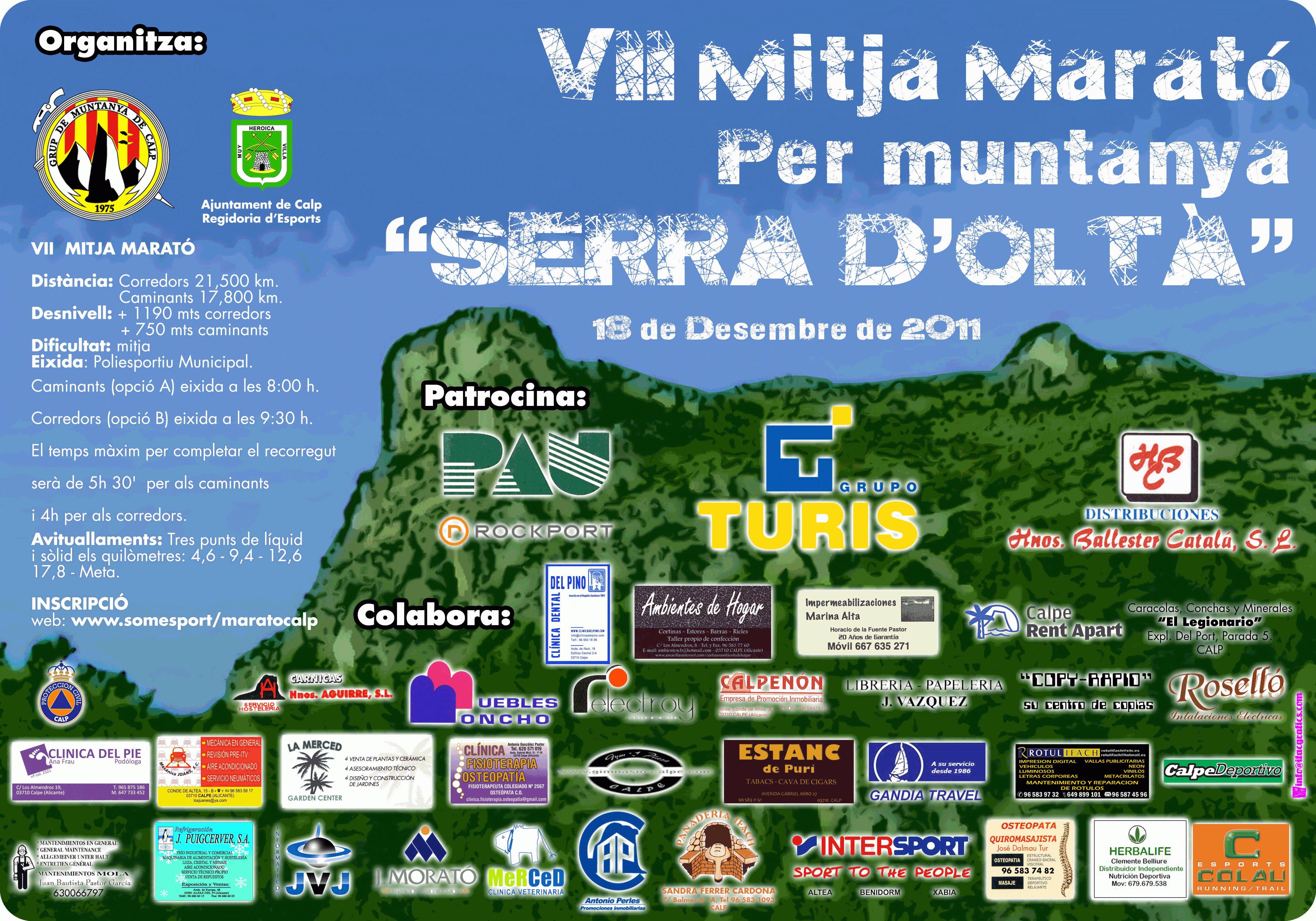 l Grup de Muntanya de Calp organitza la VII mitja Marató de Muntanya "Serra d'Oltà" que se celebrara el 18 de Desembre. La informació per a inscripcions podeu trobar-la a la web www.somesport.com.