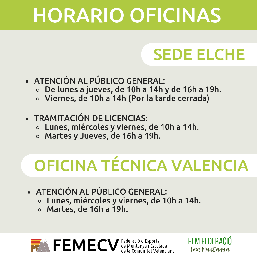 Con el fin del periodo estival retomamos las actividades y el ritmo diario de trabajo. Esto se traduce en la vuelta a los horarios de atención al público tanto en la Sede de Elche como en la Oficina Técnica de Valencia.