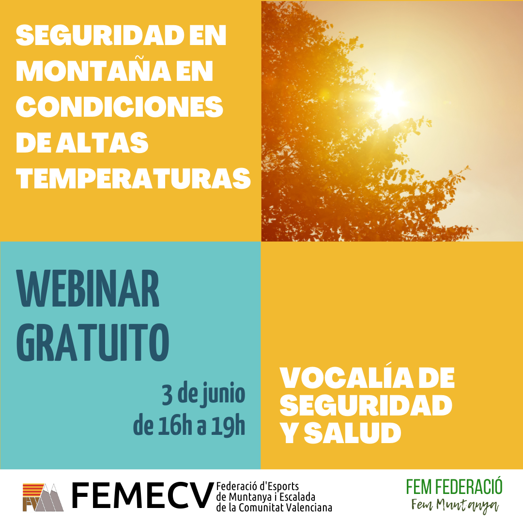 Por ello, el próximo día 3 de junio, de 16h a 19h se realizará un webinar gratuito y abierto para tratar el tema de las altas temperaturas en la montaña, a través de 3 apartados: