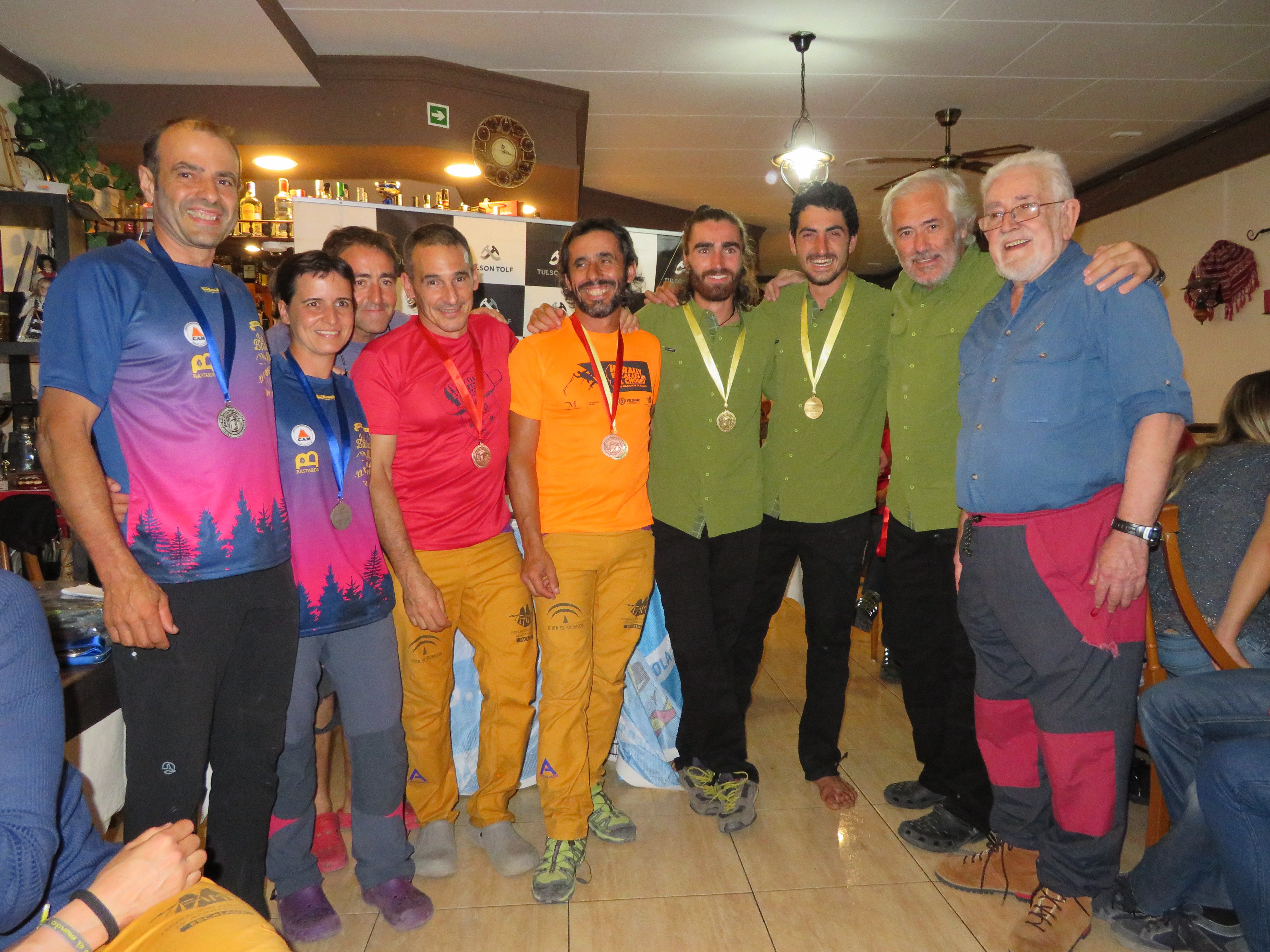 Tras mucho correr, sudar y escalar, el pódium en la categoría de SENIOR-ABSOLUTOS quedo como sigue: primer puesto para la cordada madrileña formada por Rafa Gómez y Javier Guzmán (ocho vías, 138 puntos y 1.990 metros), a la vez, esta misma cordada es la ganadora de la Liga de Rallys 12 h Escalada de 2017. En segundo lugar y a tan solo tres puntos, quedó la cordada formada por los alicantinos Roy de Valera y Javier Martin (cinco vías, 135 puntos y 1.420 metros escalados). En tercer lugar la cordada formada por Félix Sánchez y Rubén Martínez (cinco vías, 121 puntos y 1.420 metros).