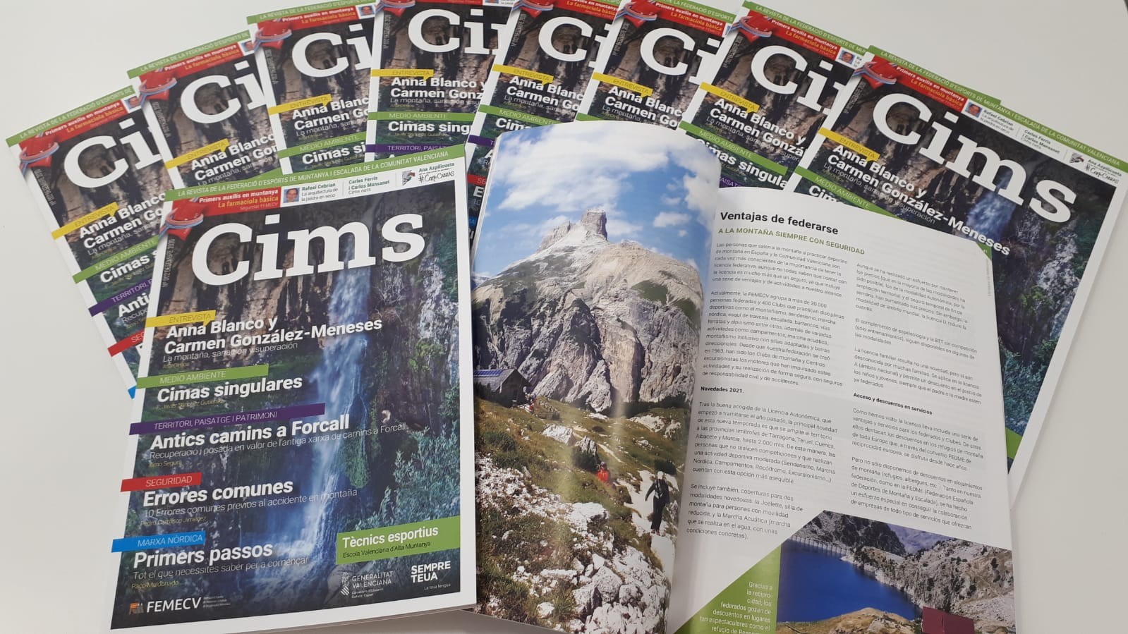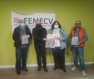 En la presentación han participado los directores de CIMS, Ana Olmos y Manil Raga; José Luis Ibáñez, en representación del equipo de redacción, y el presidente de la Federación, Carlos Ferrís. Durante el evento han agradecido a todo el equipo y los colaboradores su trabajo para sacar adelante esta publicación, “así como a las personas que se han prestado a dar su testimonio para ilustrar los beneficios que tiene la práctica del montañismo para el medio ambiente y para la salud”, ha destacado su presidente, Carlos Ferrís. Es el caso de Anna Blanco y Carmen González-Meneses que han contado en las páginas de CIMS cómo la montaña y la práctica deportiva les ayudaron en su recuperación tras superar un cáncer.
